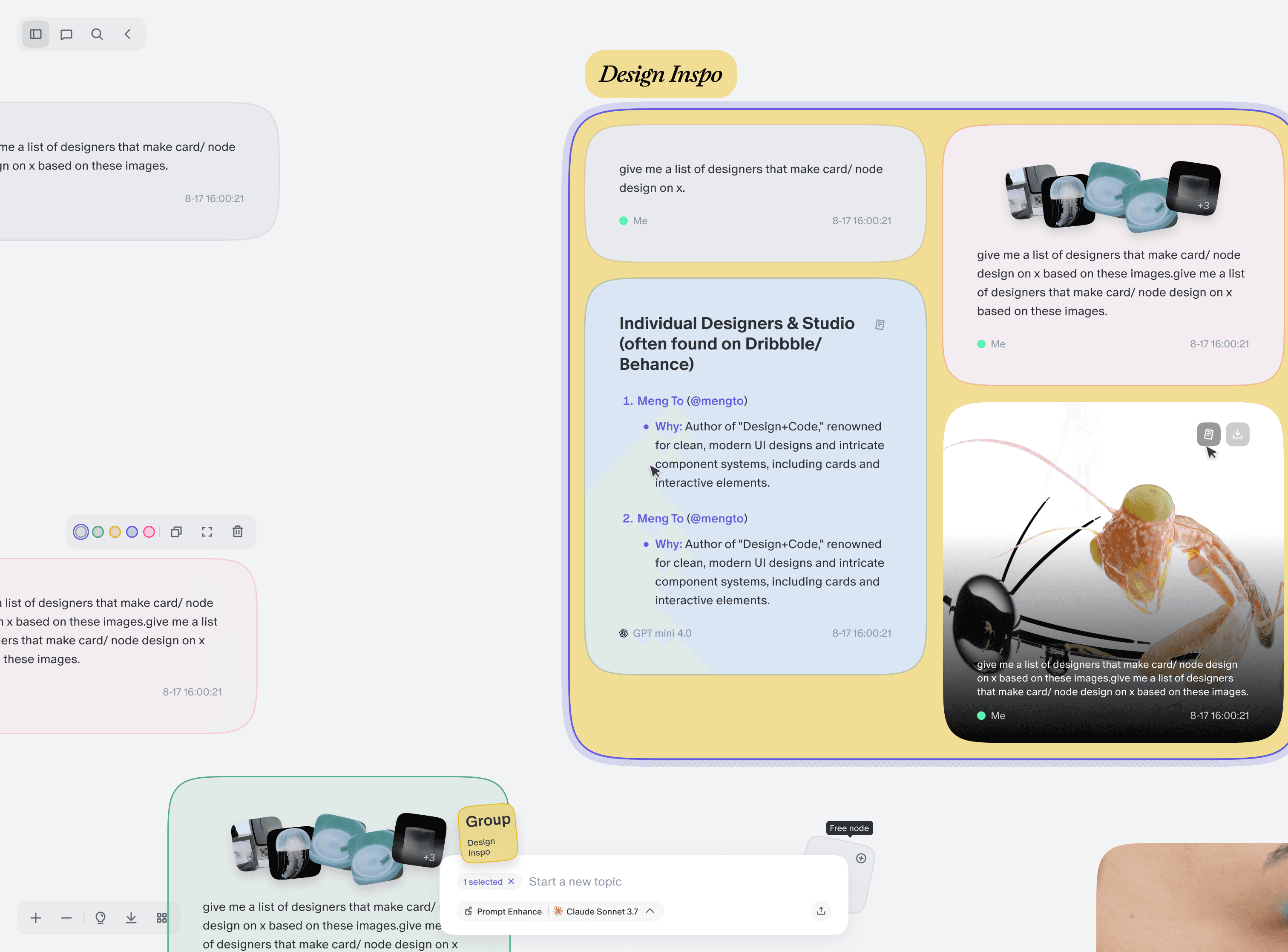 flowith made me CRY!! It made me realize that the canvas-based interaction effectively addresses the issue of tracing historical records in traditional multi-turn conversations with ChatGPT / Claude / MJ..